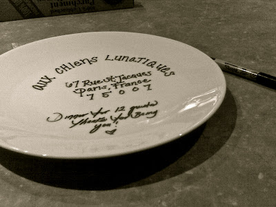 For those of you who find gift certificates simple and easy. Instead of giving a gift certificate to a restaurant, Be creative with the theme and write it out on a plain white or festive plate. (like shown above for a restaurant in Paris) Don’t forget to include the actual certificate. Happy Gift Giving Wives! - THE WIFE
