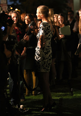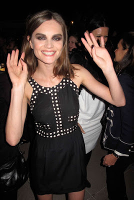 To that end, Hill had the pool at the Chateau surrounded by larger-than-life (glitter-covered, of course!) leopards and hung sparkling roses from the trees. Taking in the spectacle—and Mulberry’s new fall line—were guests like Kelly Osbourne, Jessica Joffe (in a Thakoon tie-dye dress that matched the psychedelic-inspired scene perfectly), Jessica Stroup, and Nathalie Love, all of whom were given masks and Fuji instant cameras to capture the festivities. “I want delicious!” Cat Deeley called out to her tablemates, camera in hand, while Kate Bosworth (who was wearing her own Fashion’s Night Out T-shirt) fended off playful punches from Hill. “I love her,” Hill said, laughing. “I really love her!” After the dinner, the evening’s DJ, Alexa Chung, kept the night going as Teen Vogue’s Andrew Bevan danced with Gia Coppola until the wee hours of the morning. —Jessica Kantor