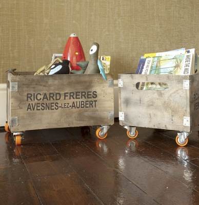 Rose and Grey Rustic Wooden Storage Box on Wheels, $55.00 Pounds