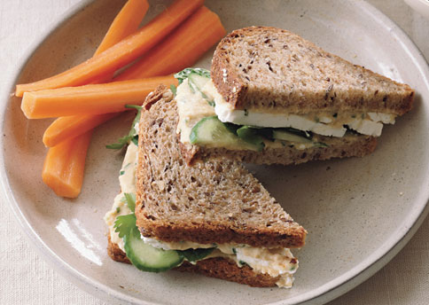 It’s a simple way to greatly reduce your consumption of take-out and processed foods. Get the recipe for Hummus and Feta Sandwiches on Whole Grain Bread pictured above.