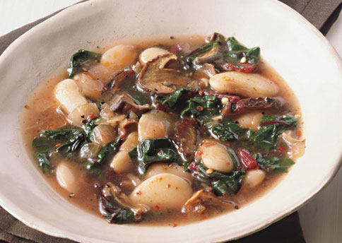 Vegetables require less energy and water to grow and produce no greenhouse gases, so they’re a far more efficient food source than domesticated livestock. Get the recipe for Lima Beans with Wild Mushrooms and Chard pictured above.