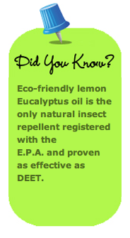 * Many eco-friendly repellents are available nationwide. Some examples include Second Skin Naturals, California Baby, Badger Balm, and Repel Lemon Eucalyptus.