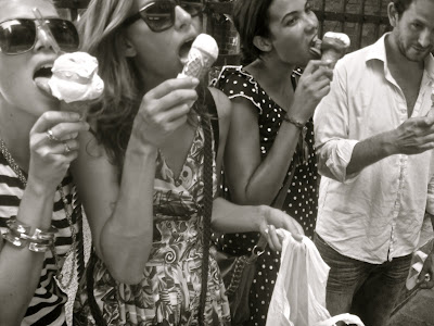 Sophie, Veronica, Myself and Max licking our quickly melting Gelato….
