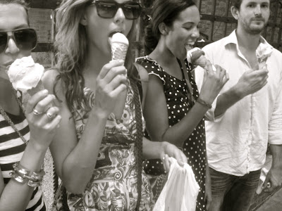 Sophie, Veronica, Myself and Max licking our quickly melting Gelato….